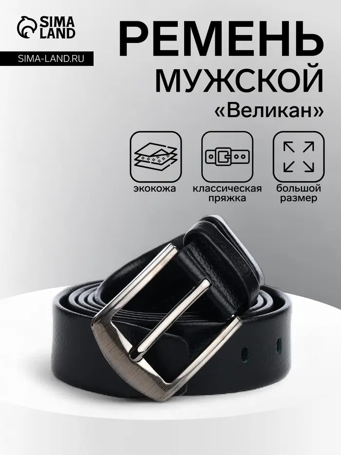 Ремень мужской «Великан» для полных, винт, ширина 3.5 см, пряжка металл, чёрный