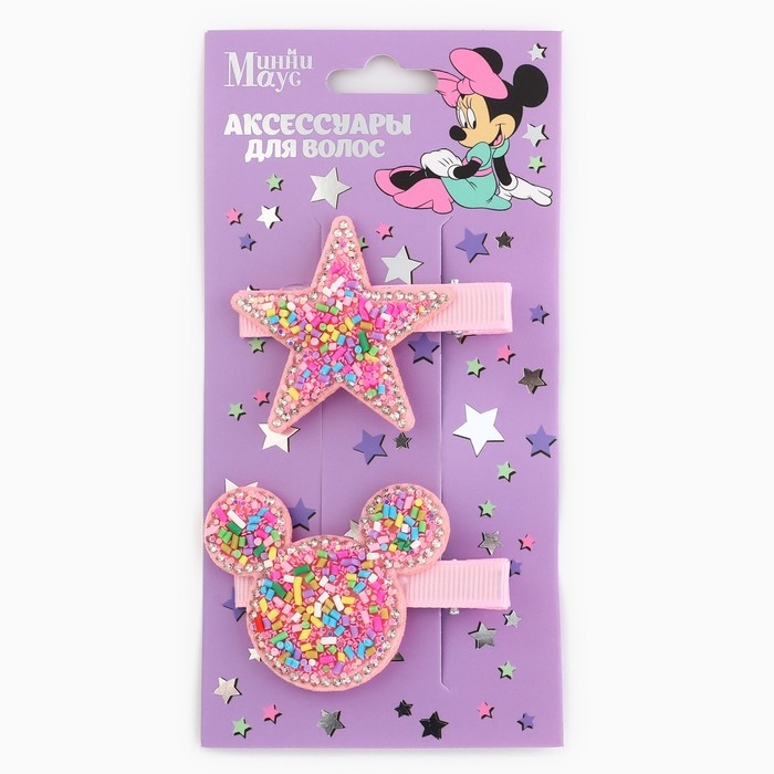 Заколка для волос с блестками, 2 шт, 5.5 см, звезда, Минни Маус