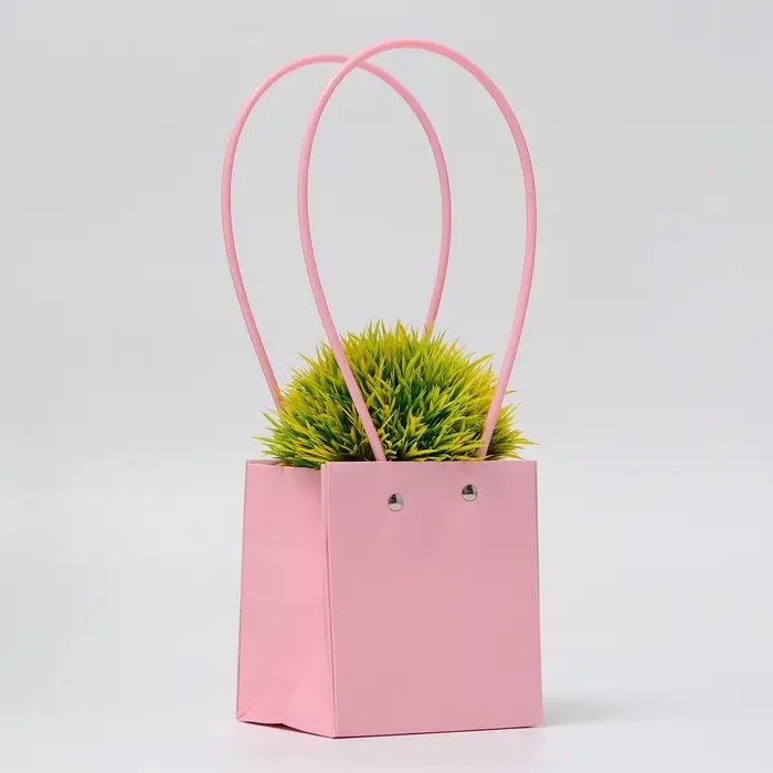 Сумка для цветов, квадратная, розовая, влагостойкая, 13×12×12 см