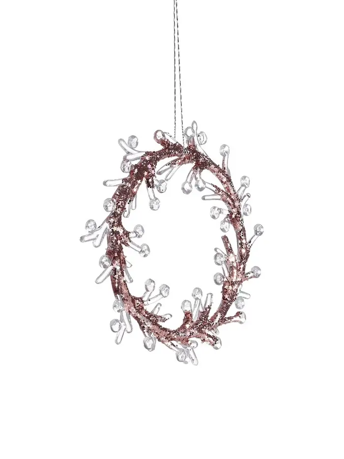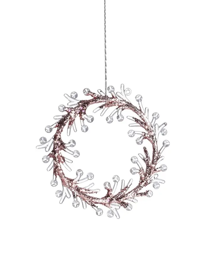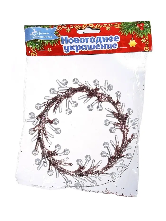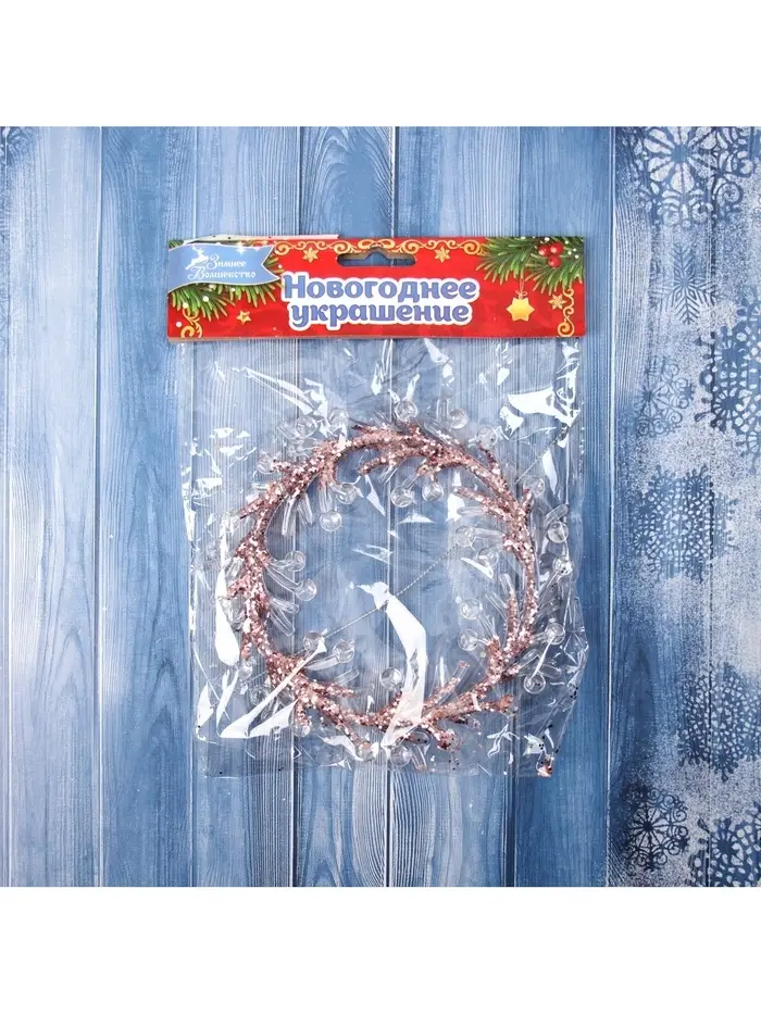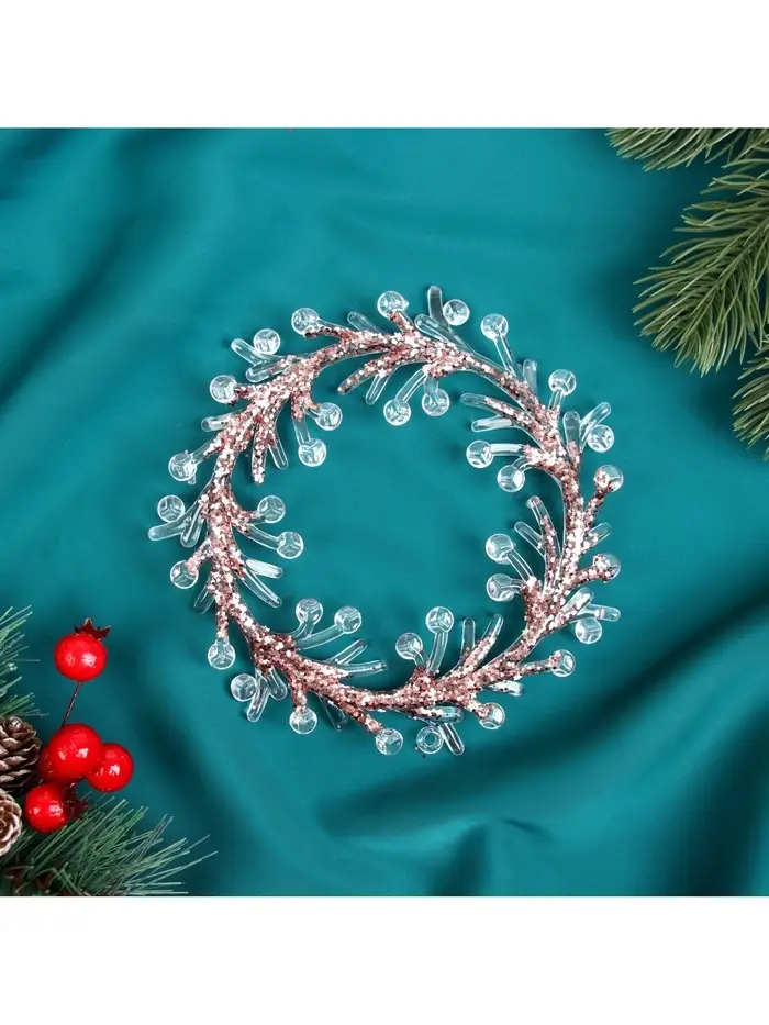 Ёлочная игрушка «Зимнее волшебство. Венок сияние» пластик, 14×14 см, прозрачно-розовый