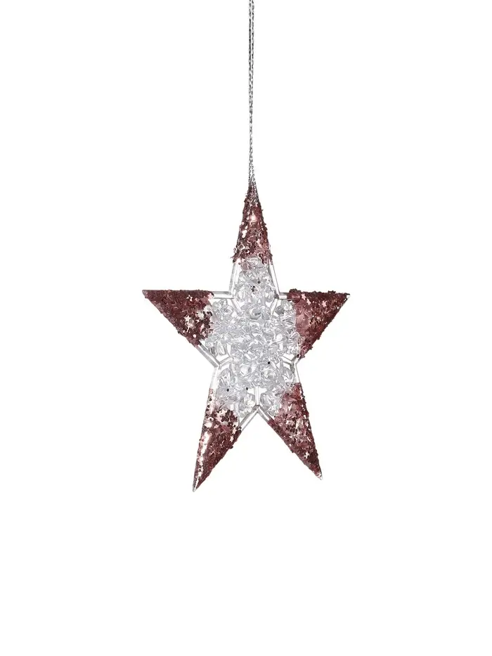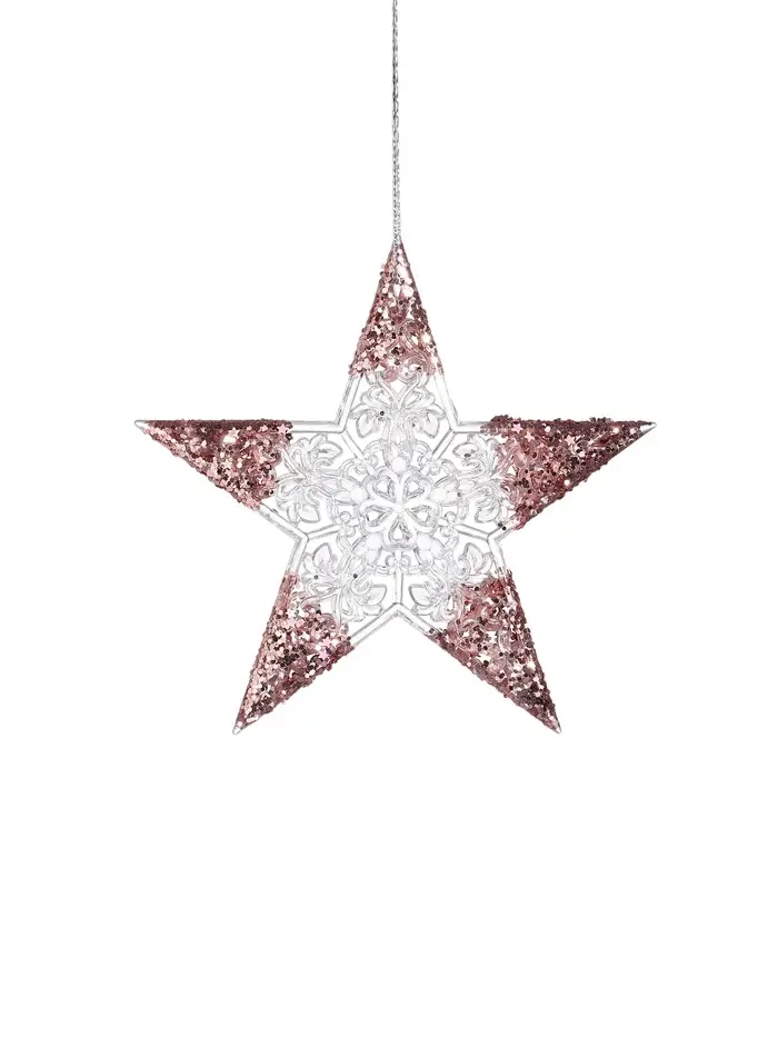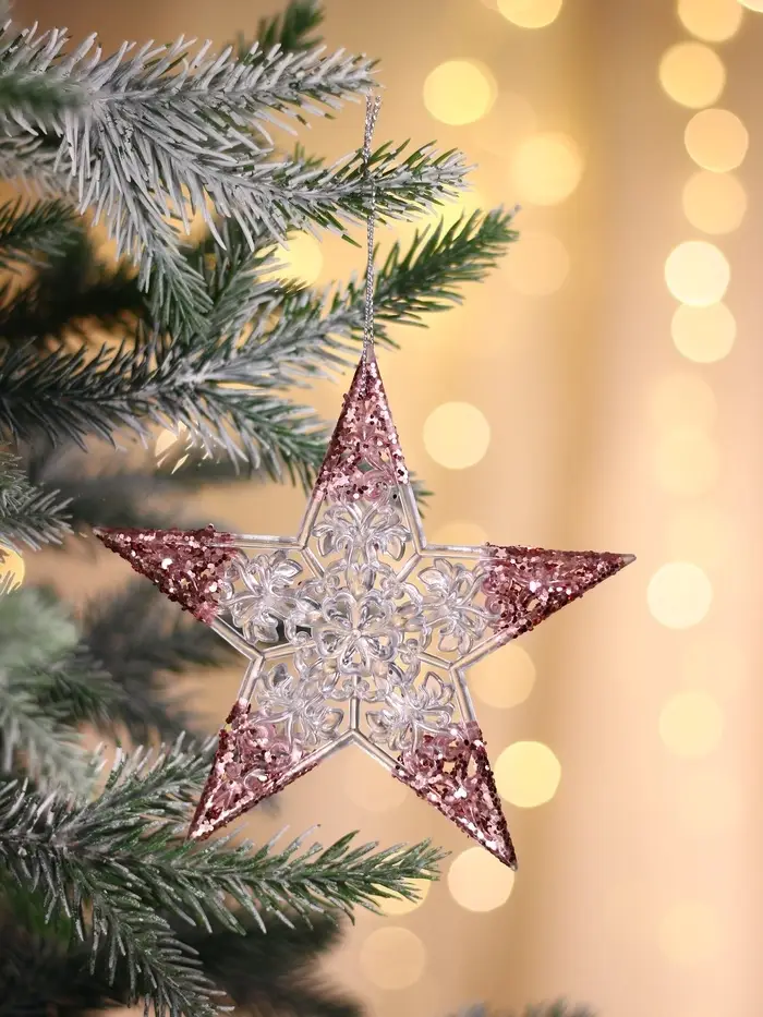 Прозрачно-розовая звезда станет изящным украшением новогодней ёлки, добавляя в атмосферу нежность и лёгкость. Резные детали подчёркивают стиль шебби-шик, создавая эффект сияния и блеска на кончиках.