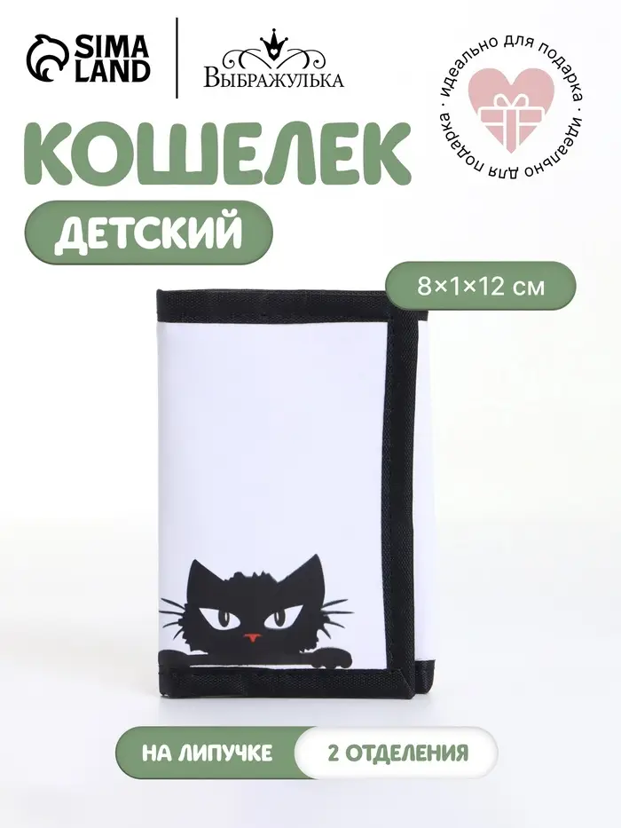Белый детский кошелёк с котёнком помогает ребёнку организовать первые личные сбережения. Универсальный аксессуар с двумя отделениями создаёт удобное пространство для хранения монет и купюр, развивая ответственность через практичное использование.