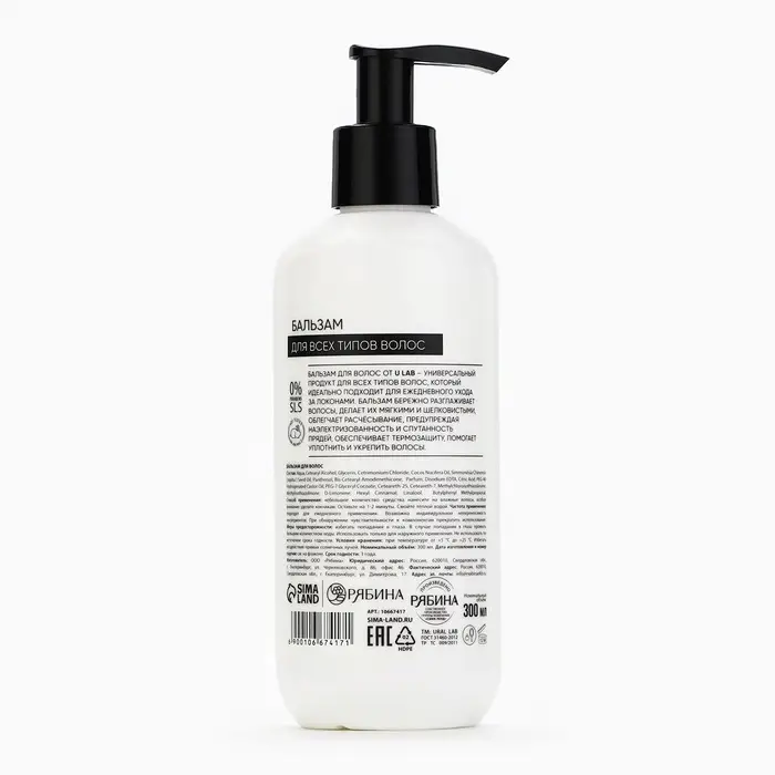Бальзам для всех типов волос, 300 мл, аромат цветочный, U LAB