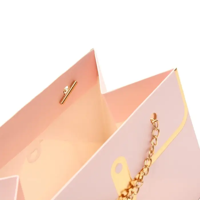 Пакет переноска для цветов, ручка цепь, «Розовый», с золотым тиснением, 15×10.5×10 см