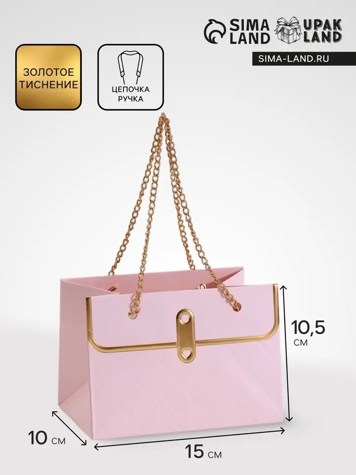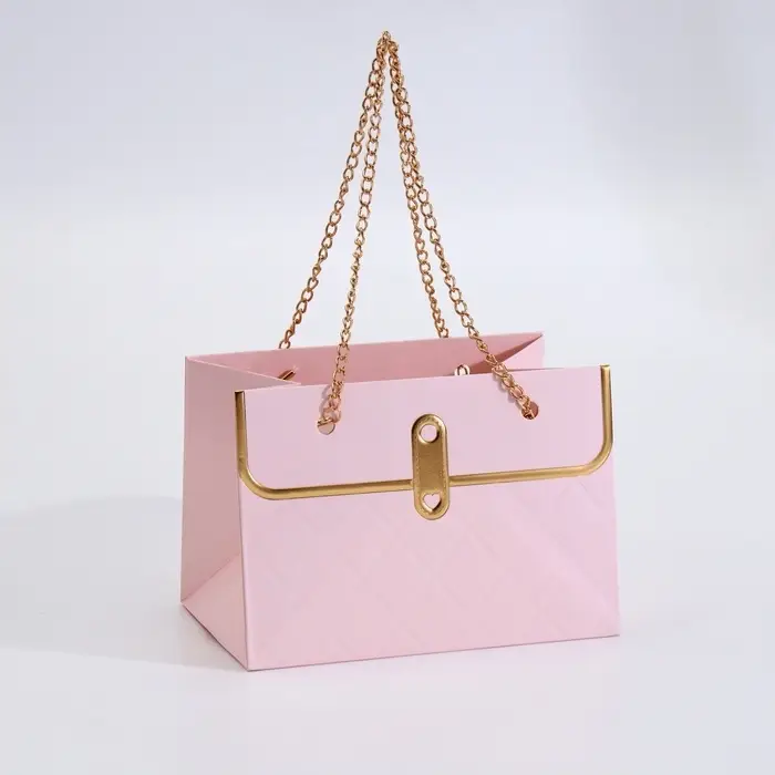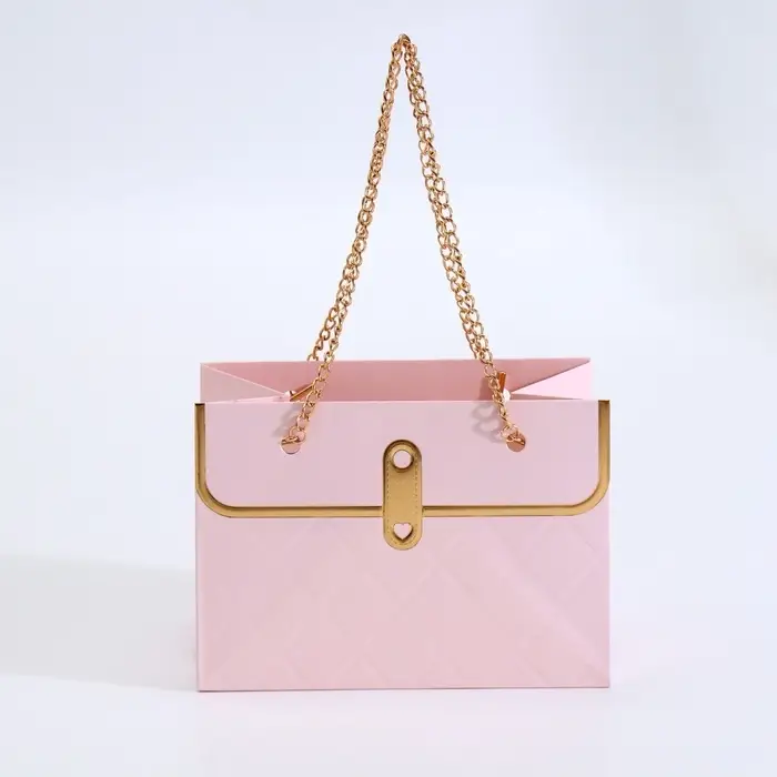 - Элегантная цепочка: Прочная металлическая ручка выглядит стильно и выдерживает вес небольшого букета. Не врезается в пальцы при переноске.