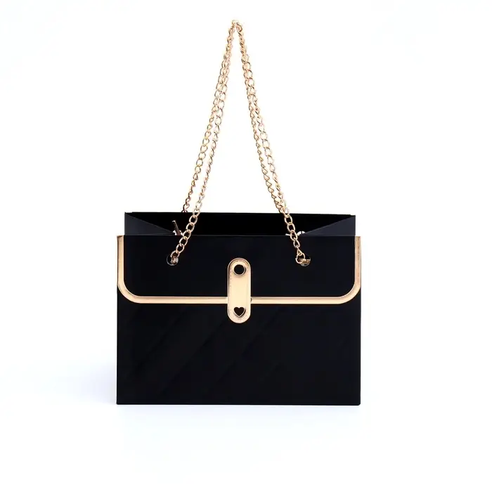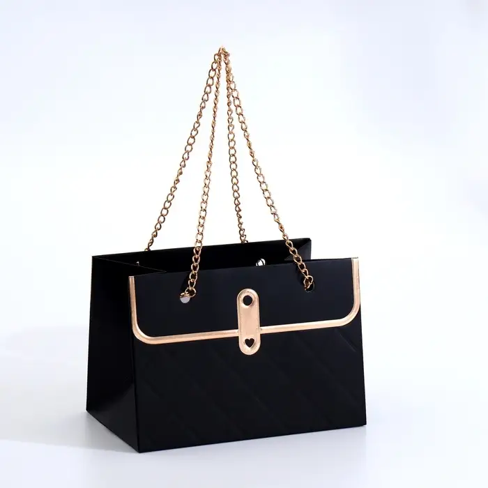 - Металлическая ручка и цепь: Удобно носить, при этом выглядит как аксессуар из бутика. Цепь добавляет шарма, превращая простую упаковку в стильный элемент подарка.
