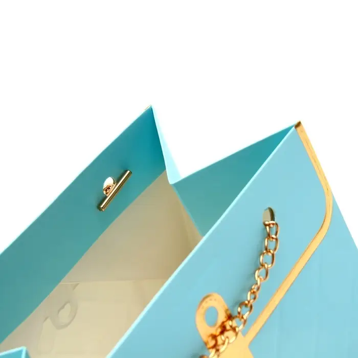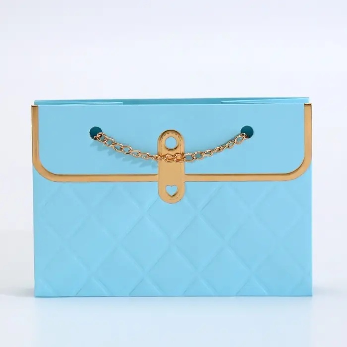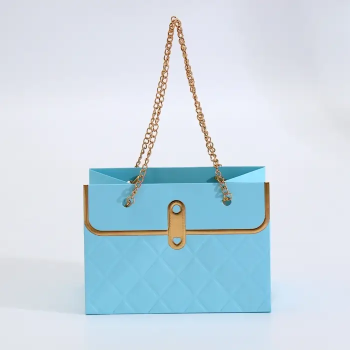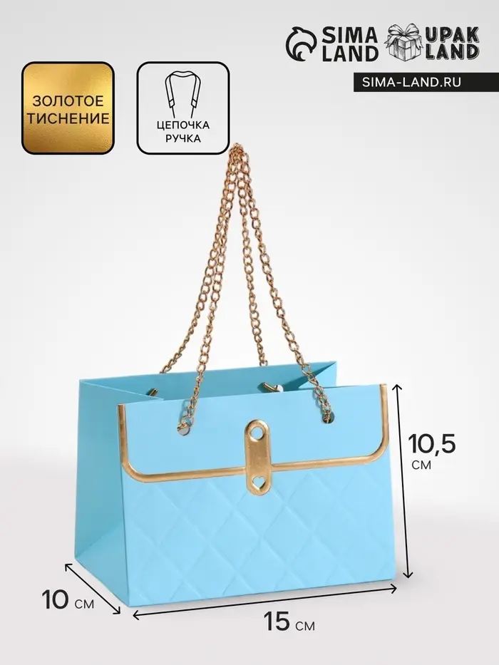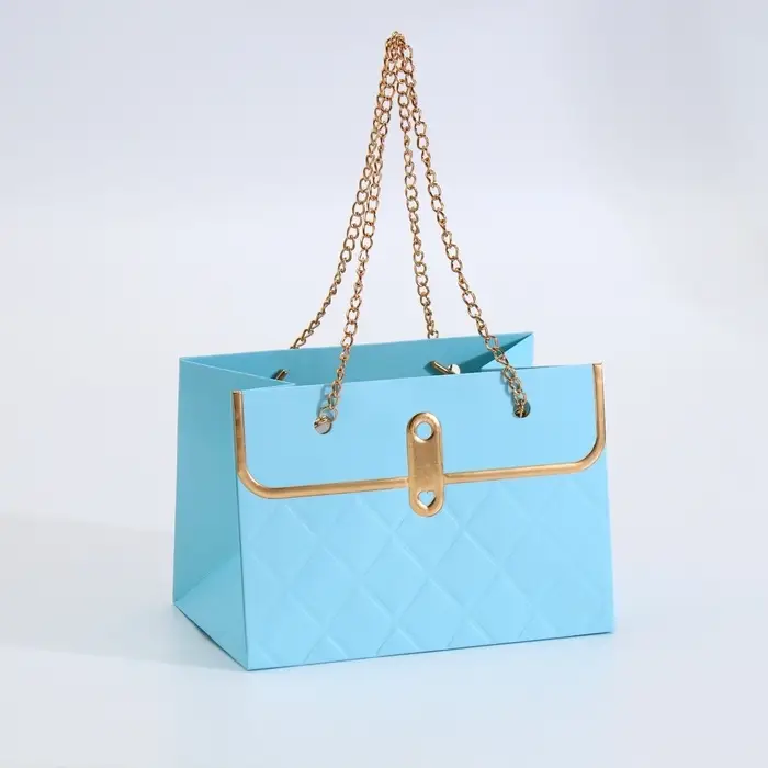 - Металлическая ручка с декоративной цепью: Удобно носить, при этом выглядит как стильный аксессуар. Цепь добавляет изысканности, превращая обычную упаковку в элемент подарка.