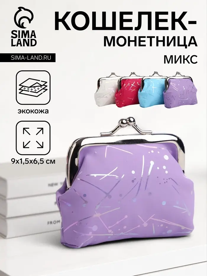Кошелёк-монетница, на фермуаре, 9×1.5×6.5 см, с перламутровым принтом, МИКС