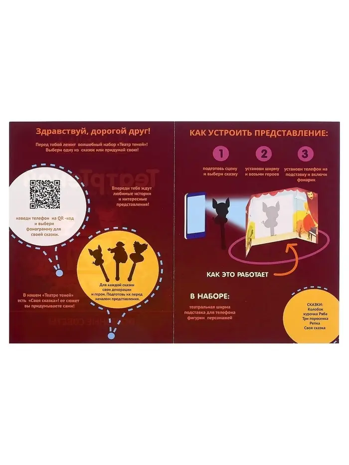 Погрузитесь в атмосферу волшебных историй! Настольный театр теней превращает обычный вечер в маленькое представление и помогает ребёнку почувствовать себя сказочником. С его помощью можно придумать новые сюжеты или разыграть любимые сказки прямо дома.