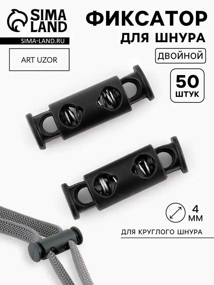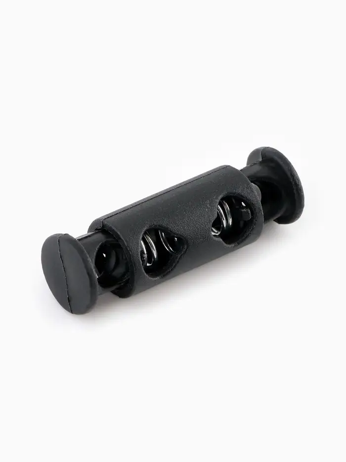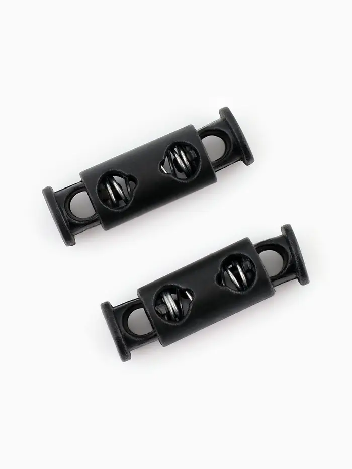 Двойные фиксаторы для шнуров помогут надёжно закрепить круглые шнуры в одежде, аксессуарах и туристическом снаряжении. Благодаря пружинному механизму они удерживают шнур на нужной длине, не давая ему самопроизвольно соскальзывать. Чёрный цвет делает элементы универсальными для использования в спортивных и повседневных вещах.