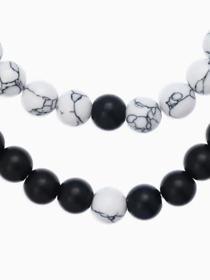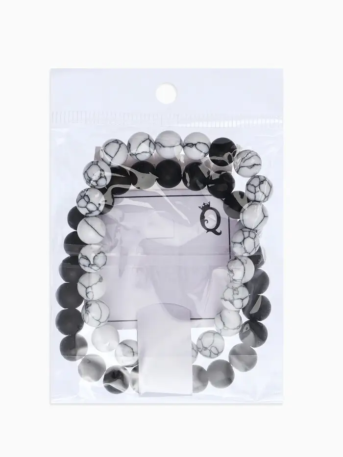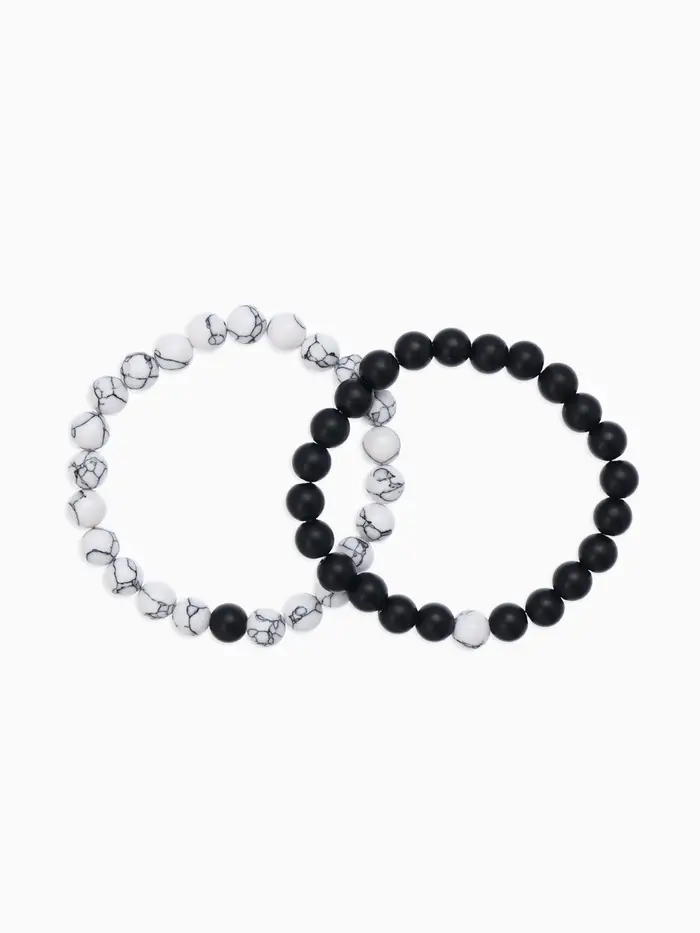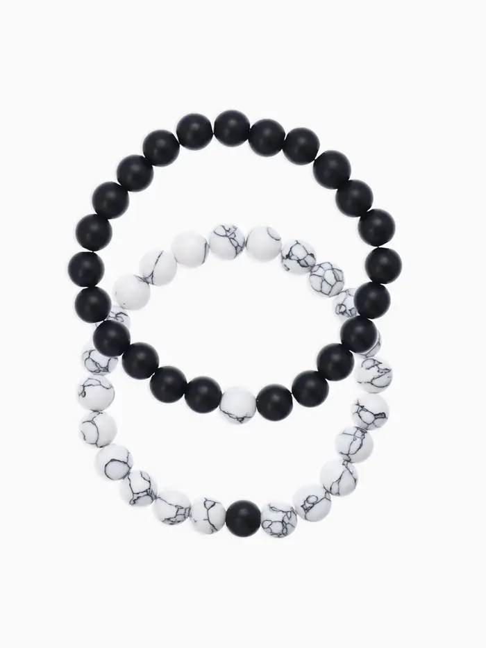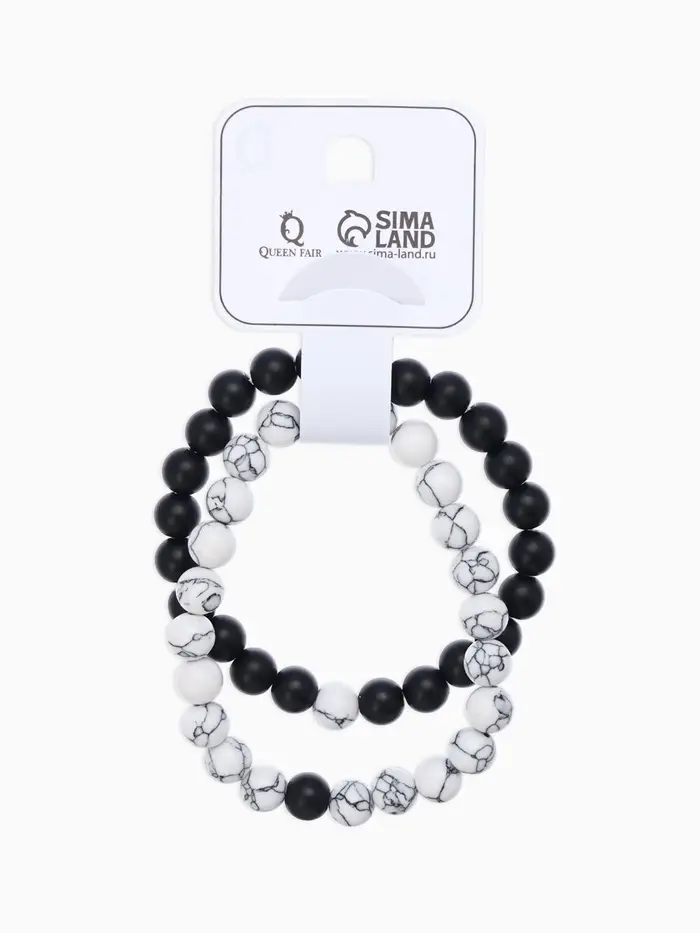 Набор браслетов 2 шт. шар №8 «Агат», чёрно-белый