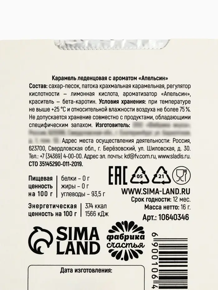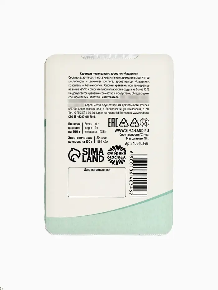 Состав: сахар-песок, патока крахмальная карамельная, регулятор кислотности - лимонная кислота, ароматизатор "Апельсин", краситель - бета-каротин.