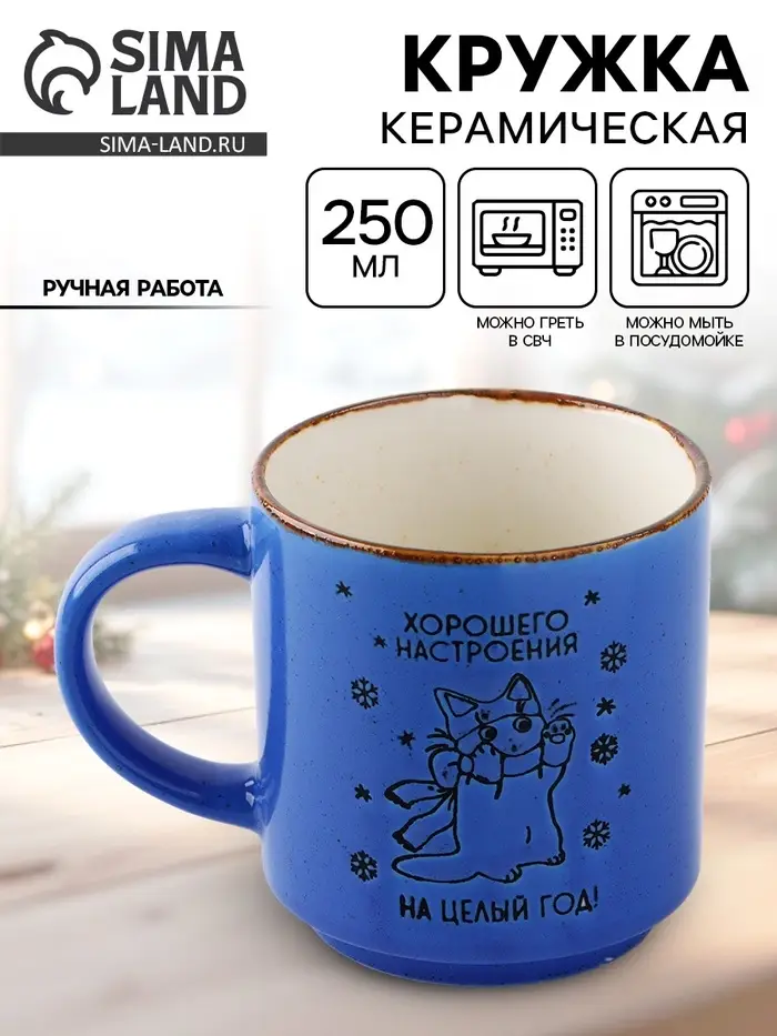 Кружка новогодняя керамическая «Хорошего настроения», 250 мл, ручная работа