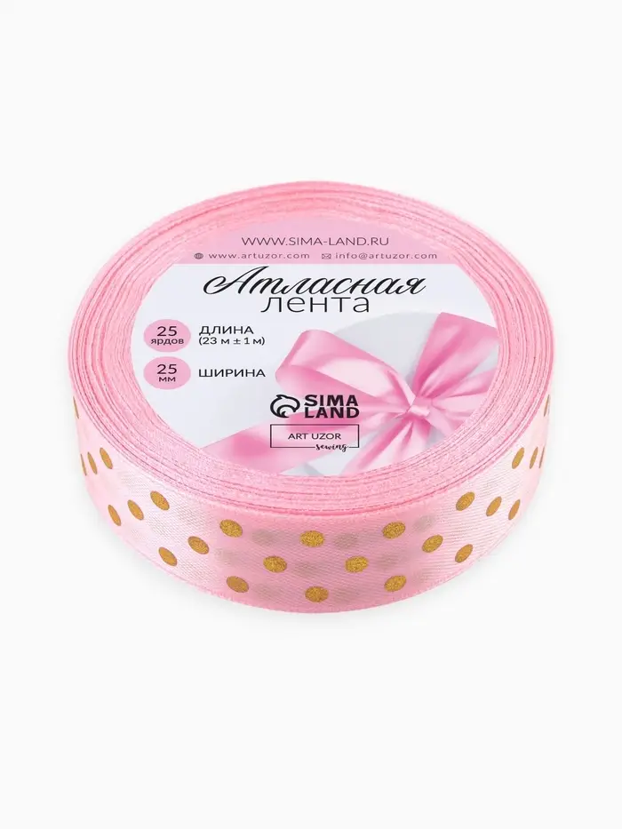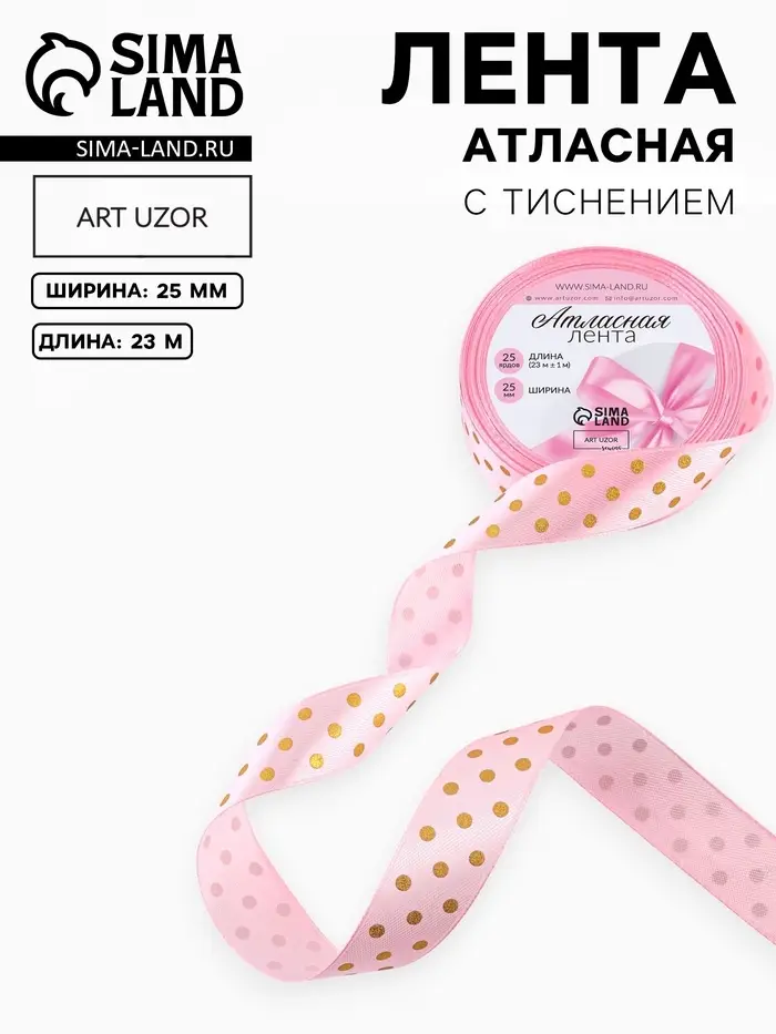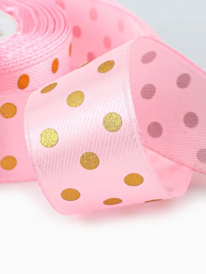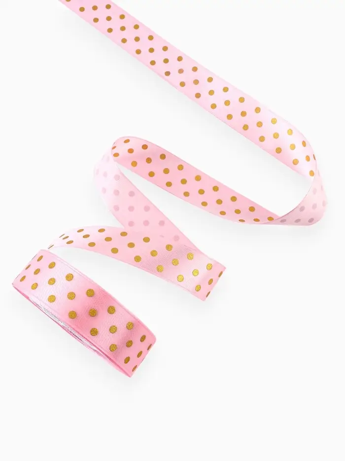 Лента атласная с тиснением «Горох», 25 мм, 23±1 м, розовая №04