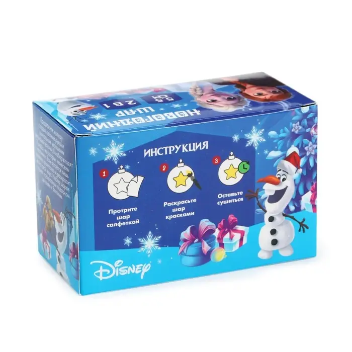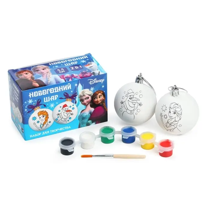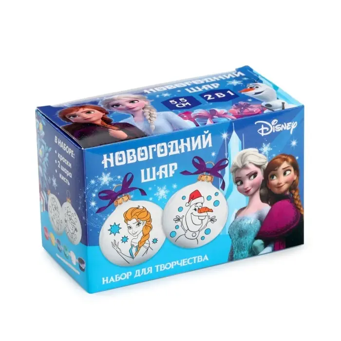 Ёлочные шары под раскраску на новый год «Эльза и Олаф», d=5.5 см, 2 шт., краски, набор для творчества, Холодное Сердце