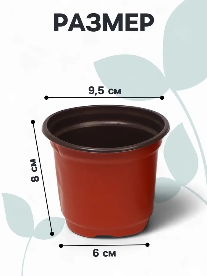 - Эргономичный дизайн: широкий верх диаметром 9,5 см и высота 8 см создают устойчивую конструкцию, позволяющую легко извлекать растения для пересадки.