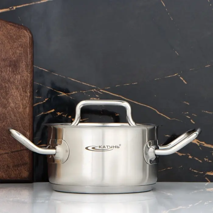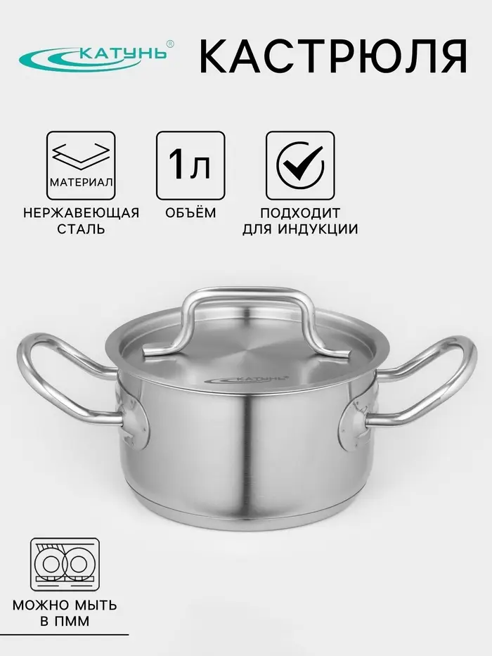 Кастрюля Катунь «Общепит», 1 л, d=14 см, с крышкой, капсульное дно, индукция, нержавеющая сталь, хромированная