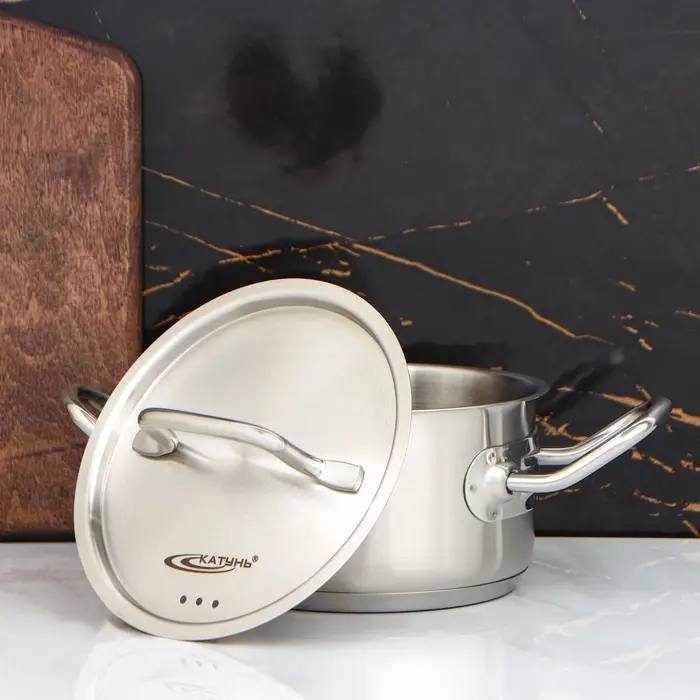 Кастрюля Катунь «Гретта», 2.2 л, d=18 см, с крышкой, капсульное дно, индукция, нержавеющая сталь, AISI - 201, хромированная