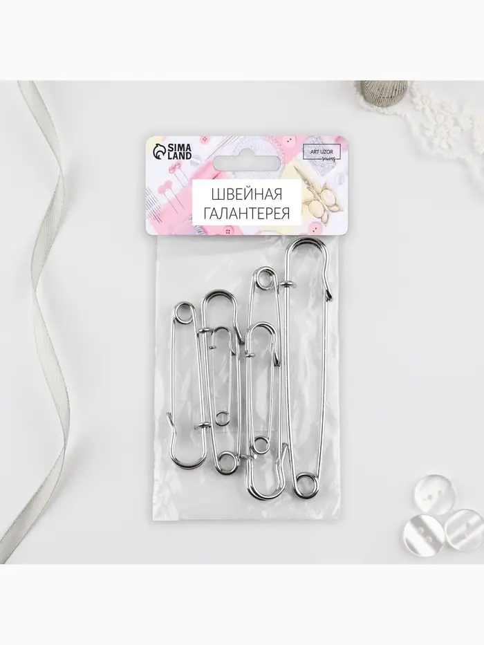 Булавки английские, 36 мм, 1000 шт., цвет серебряный