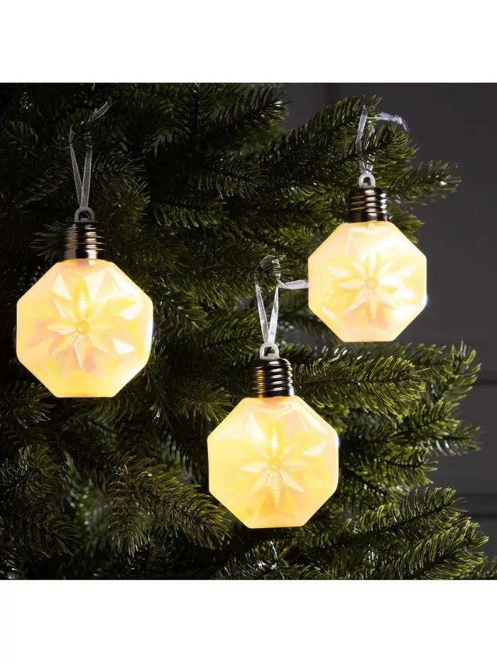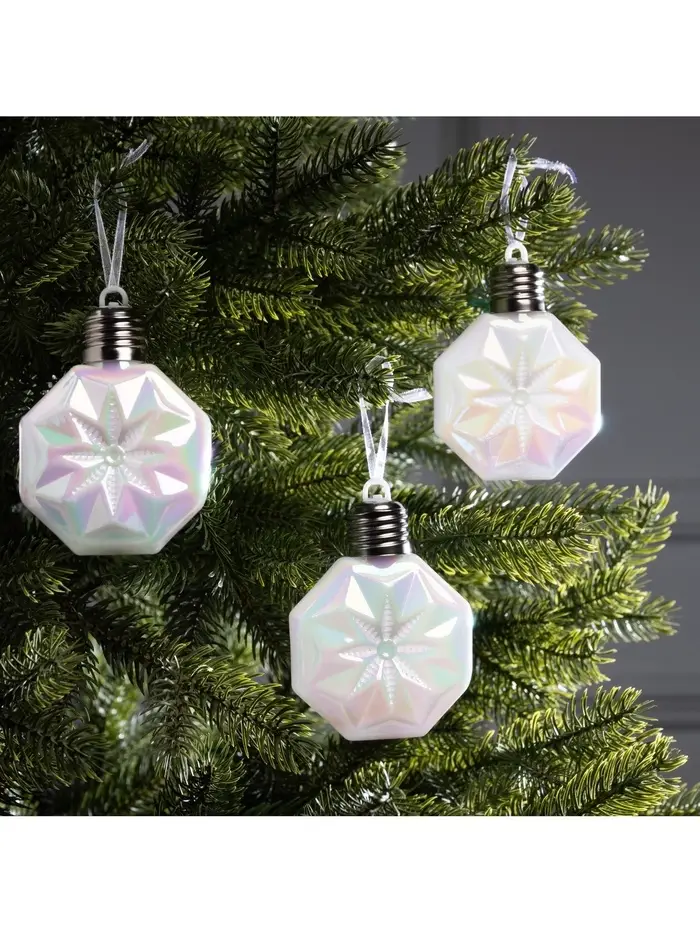 Набор ёлочных шаров «Изморозь», 3 шт., d=7.5 см, 3 LED, от батареек AG13×9, свечение тёплое белое