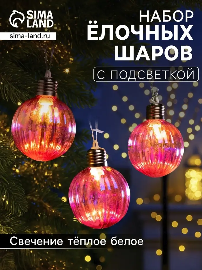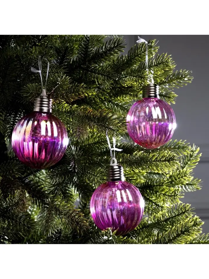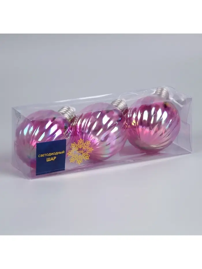 Набор ёлочных шаров «Розовые грани», 3 шт., d=7 см, 3 LED, от батареек AG13×9, свечение тёплое белое