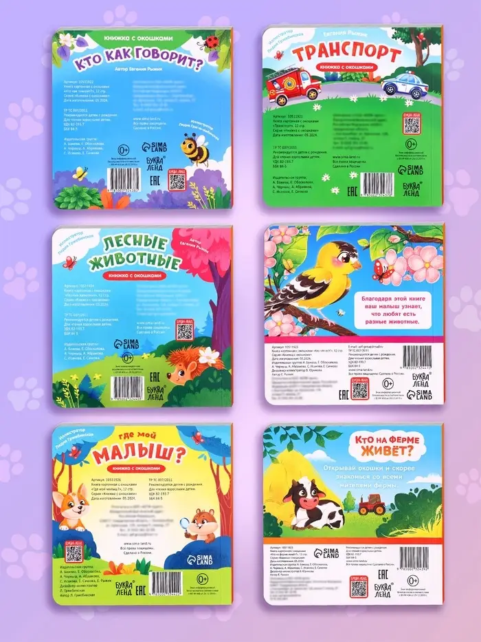 Книжки картонные с окошками, набор 6 шт. по 12 стр.