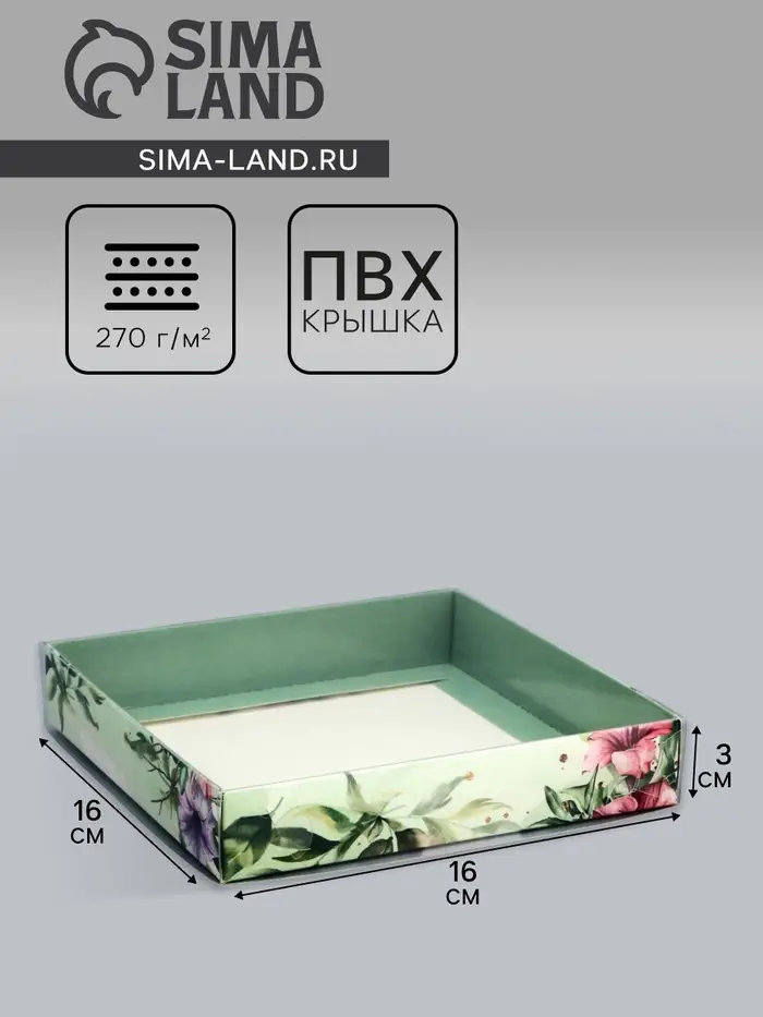- Размер 16 х 16 х 3 см идеально подходит для размещения небольших сладостей, аксессуаров или сувениров. Прозрачная PVC крышка позволяет элегантно продемонстрировать содержимое, создавая эффект сюрприза и подчеркивая утонченность подарка.