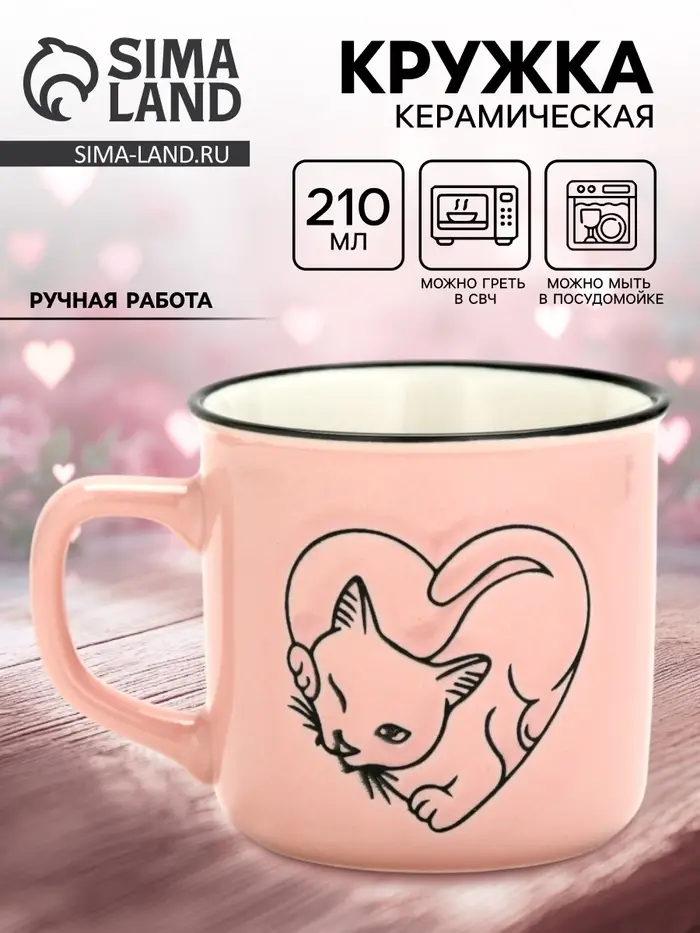 Подарите её человеку, чьё присутствие уже делает день лучше. Или себе — как напоминание: самые сильные чувства редко бывают громкими. Чаще — они в розовой кружке, в белом фоне, в котике, который смотрит не на мир, а на вас. Потому что ”любовь” — это не всегда слово. Иногда — это сердце. И внутри него — котик. И всё.