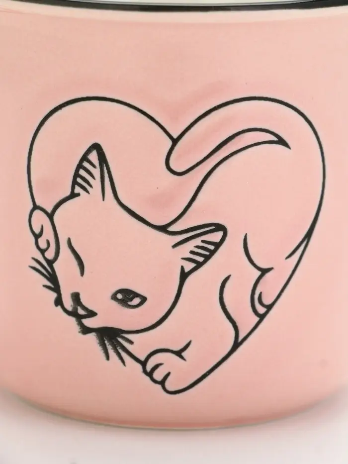 Кружка «Котик» — это лёгкое признание, вылепленное в керамике. Нежно-розовая основа, как утренний свет на подушке, белая внутренняя поверхность — чистая, как первый глоток тишины, и на корпусе — котик, выдавленный вручную, сидящий внутри сердца.
