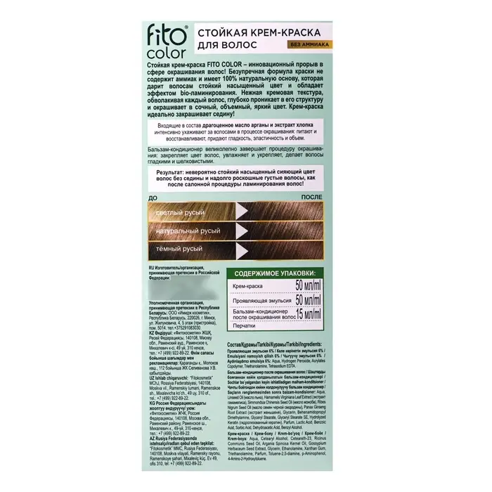 Стойкая крем-краска для волос Fitocolor, тон натуральный русый, 115 мл