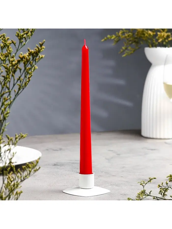 Представляем вашему вниманию изысканную коническую свечу, которая станет не только источником мягкого света, но и стильным акцентом в любом интерьере. Её насыщенный красный цвет привлекает взгляд, а классическая форма делает её универсальным выбором для украшения праздничного стола, романтического вечера или декора дома.