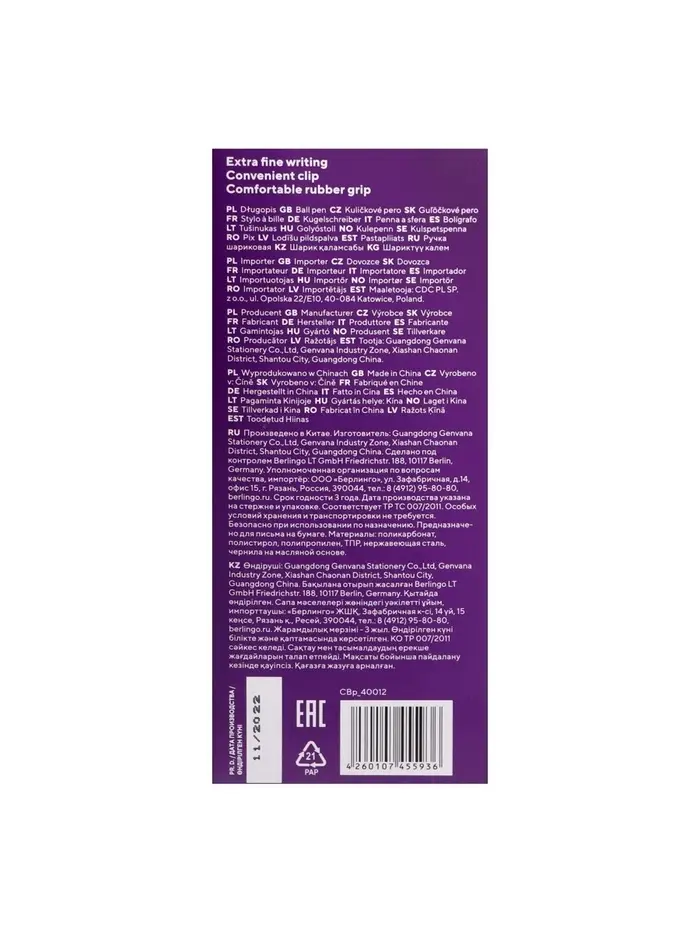 Шариковая ручка подойдёт тем, кто ценит тонкую и аккуратную линию. Узкий пишущий узел помогает фиксировать мельчайшие детали — от формул и схем до конспектов, где важна точность. Синяя линия выглядит чисто и предсказуемо, поэтому мысли легче складываются в структурированный текст. Резиновый упор создаёт спокойный контакт с корпусом: пальцы не скользят, а рука дольше сохраняет устойчивый темп письма.
