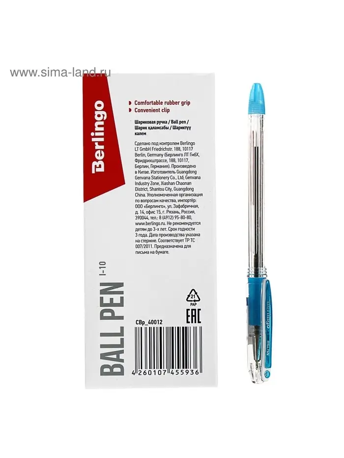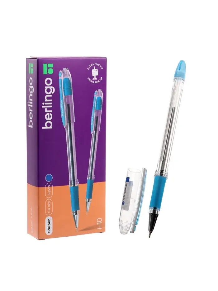 Ручка шариковая Berlingo. I-10, синий стержень, узел 0.4 мм, резиновый упор