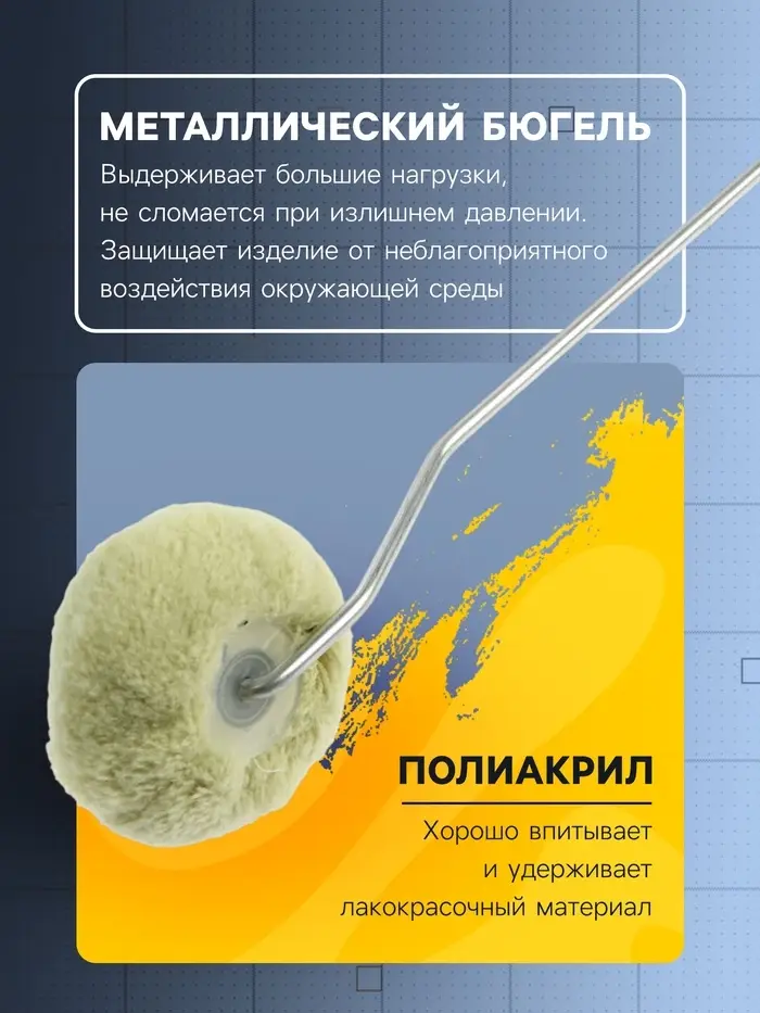 - Специальный материал шубки и длина ворса обеспечивают равномерность нанесения краски.