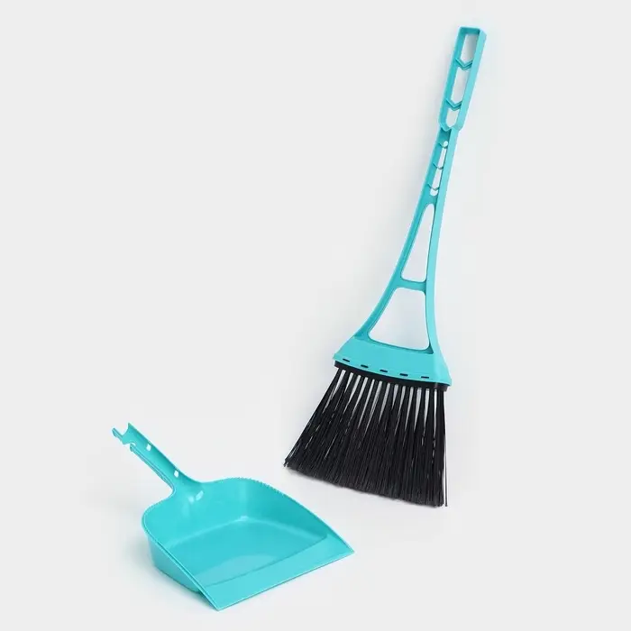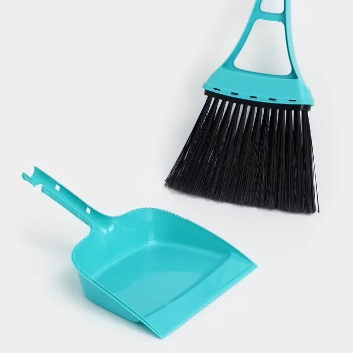 Веник для пола Disco, с совком, 8×19×58 см, бирюзовый