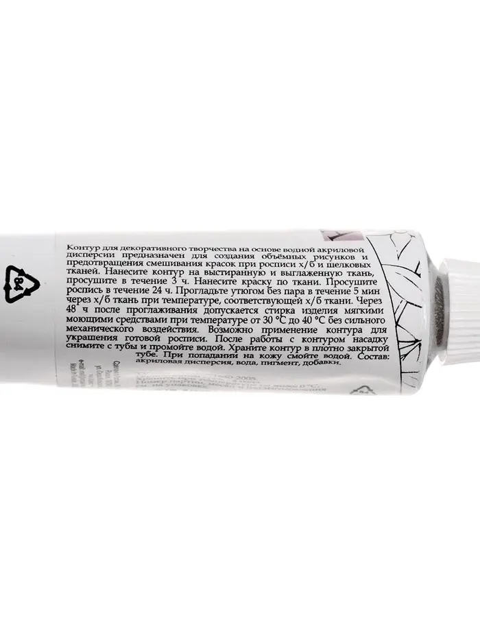 Контуры для декоративно-прикладного творчества на основе водной акриловой дисперсии предназначены для создания объемных рисунков и предотвращения смешивания красок при росписи х/б и шелковых тканей.