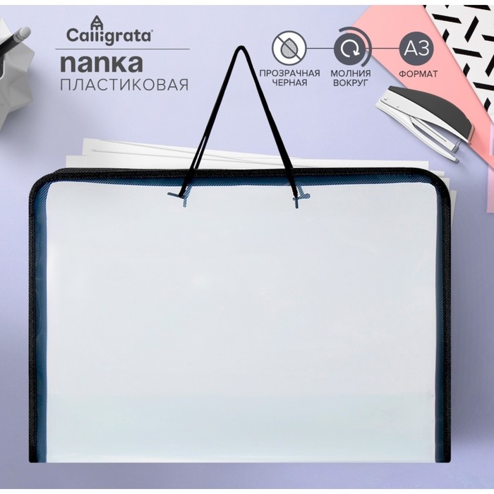 Папка для чертежей и рисунков А3, 460 х 320 х 25 мм, с ручками, пластиковая, молния вокруг, "Офис"