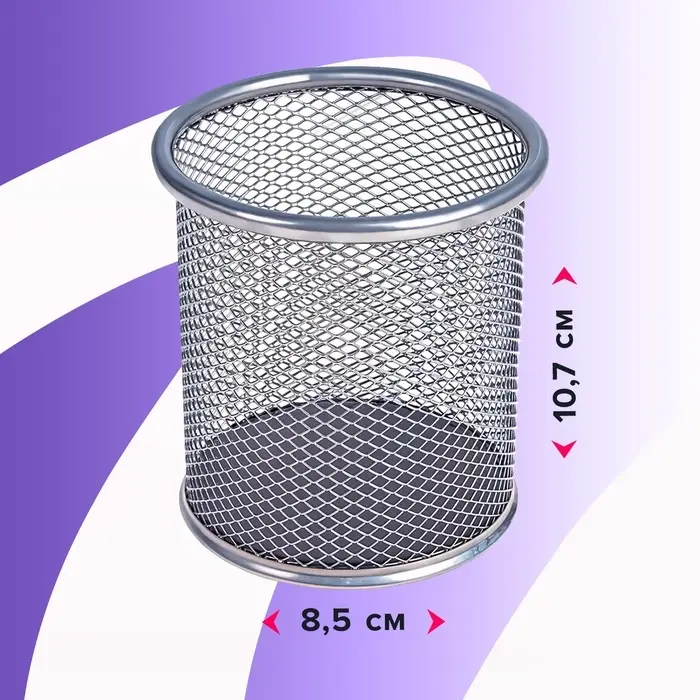 Практичная и долговечная металлическая подставка - органайзер предназначена для хранения различных канцелярских принадлежностей.