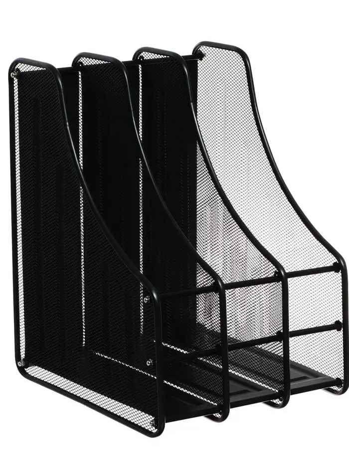 Лоток для бумаг А4, вертикальный, металлическая сетка, 3 отделения, чёрный