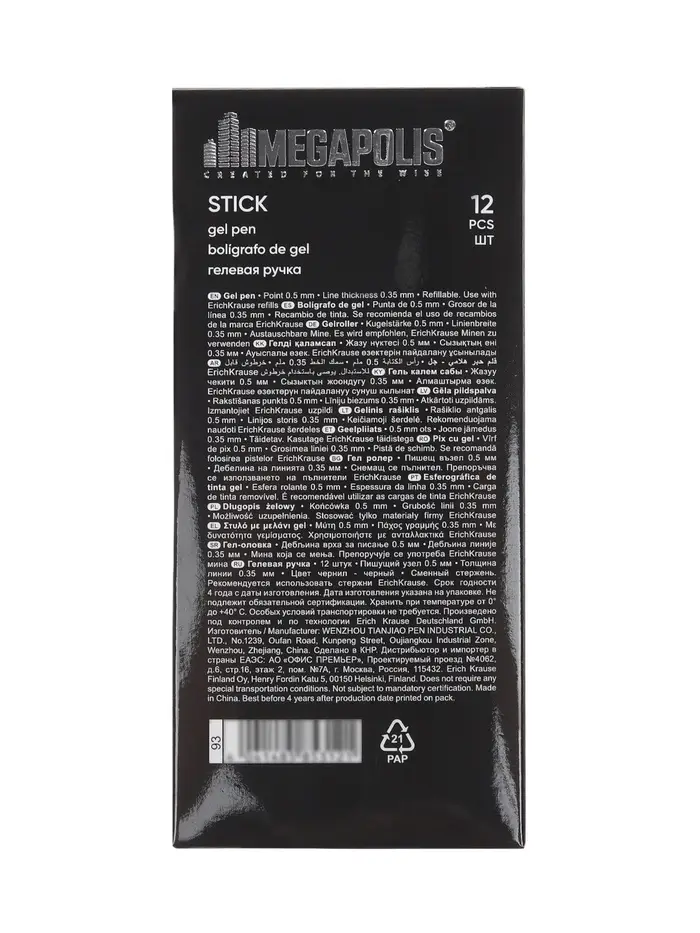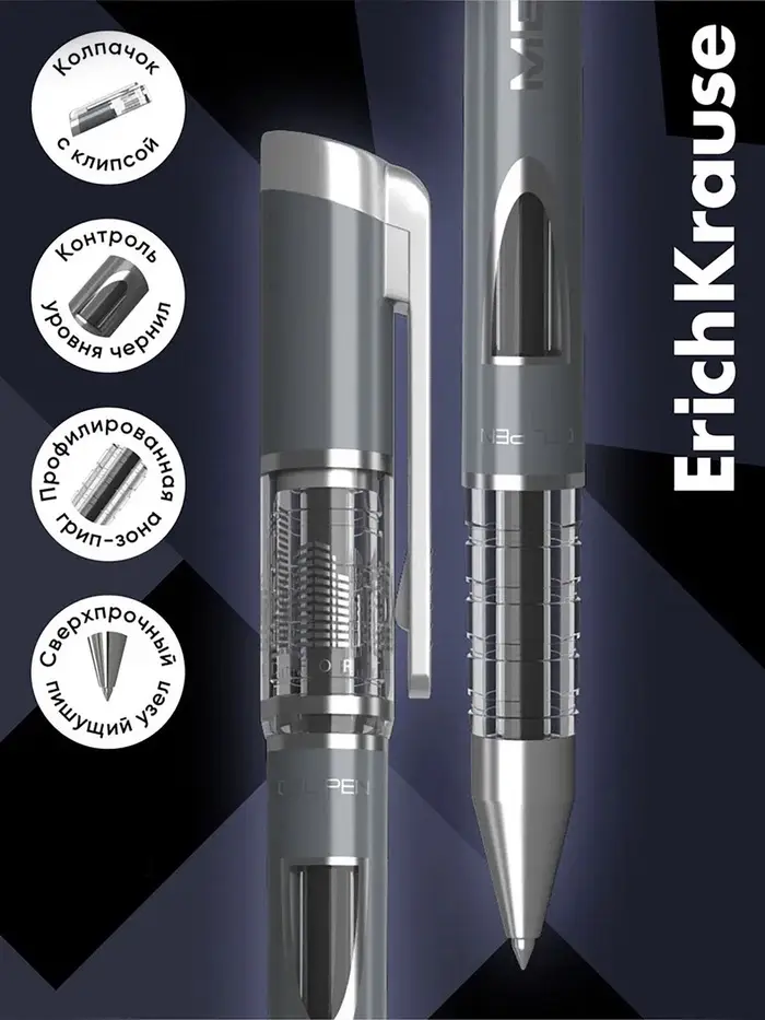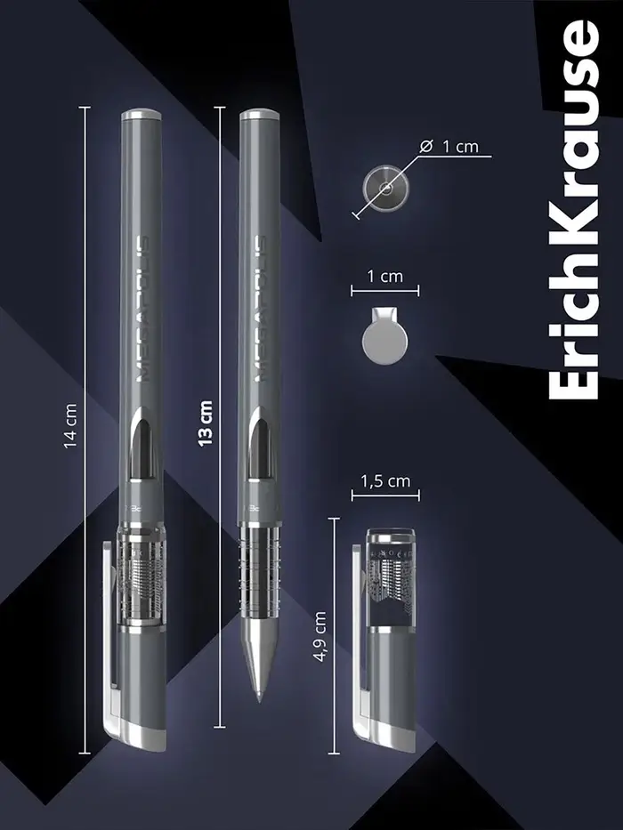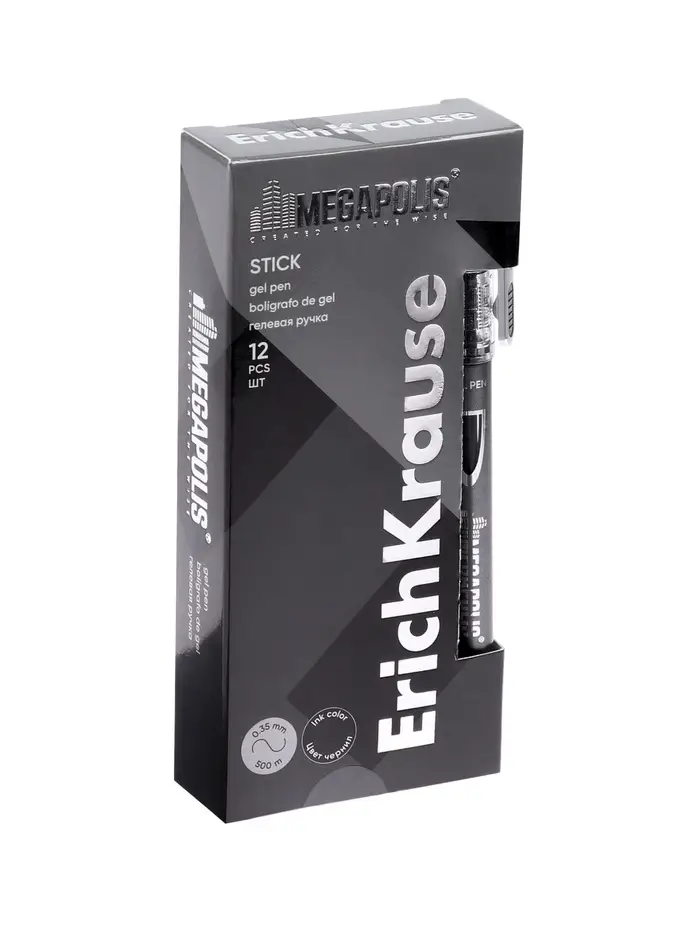 Современная гелевая ручка Stick с стандартным типом пишущего узла и заменяемым стержнем. Ручка имеет непрозрачный круглый корпус с окошком контроля уровня чернил и удобной профилированной грип-зоной. 5-канальный пишущий узел в сочетании со свето- и водостойкими гелевыми чернилами обеспечивает точное и быстрое письмо без усилий. Модель MEGAPOLIS® Gel стала одним из бестселлеров в ассортименте гелевых ручек ErichKrause более чем в пятидесяти странах мира.