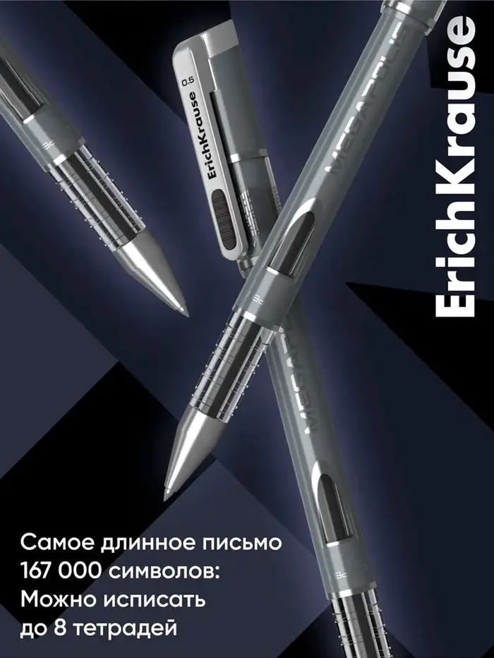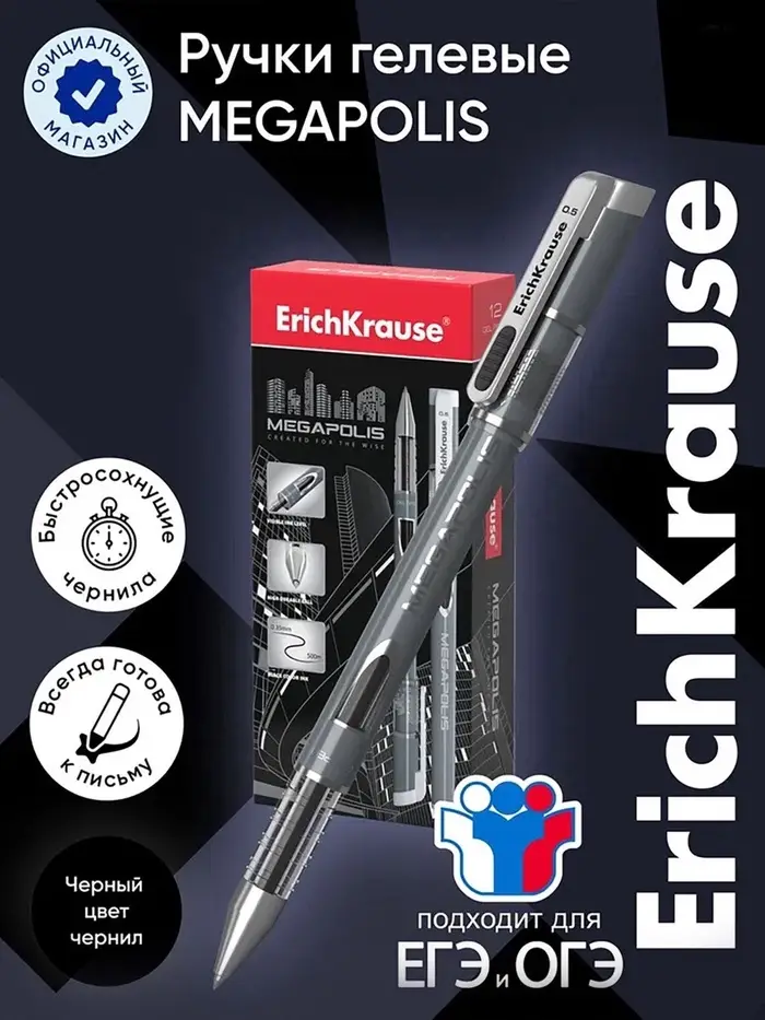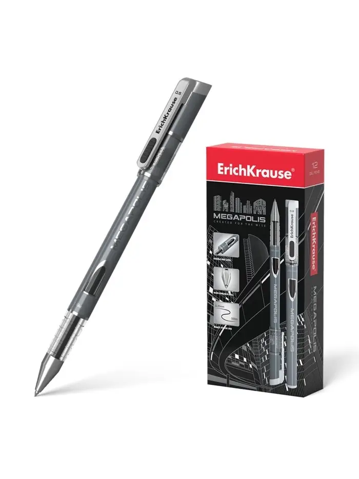 Ручка гелевая ErichKrause Megapolis Gel, чернила чёрные, узел 0.5 мм, длина линии письма 500 метров