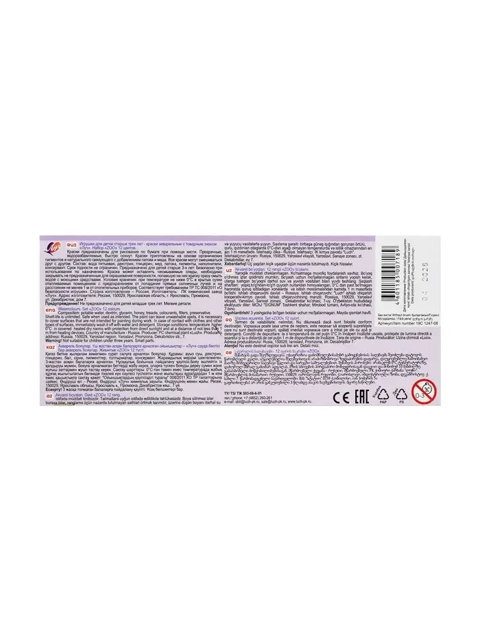 Краски акварельные Zоо медовые полусухие изготовлены на основе органических пигментов и пчелиного мёда. Акварель соответствуют европейским директивам безопасности.