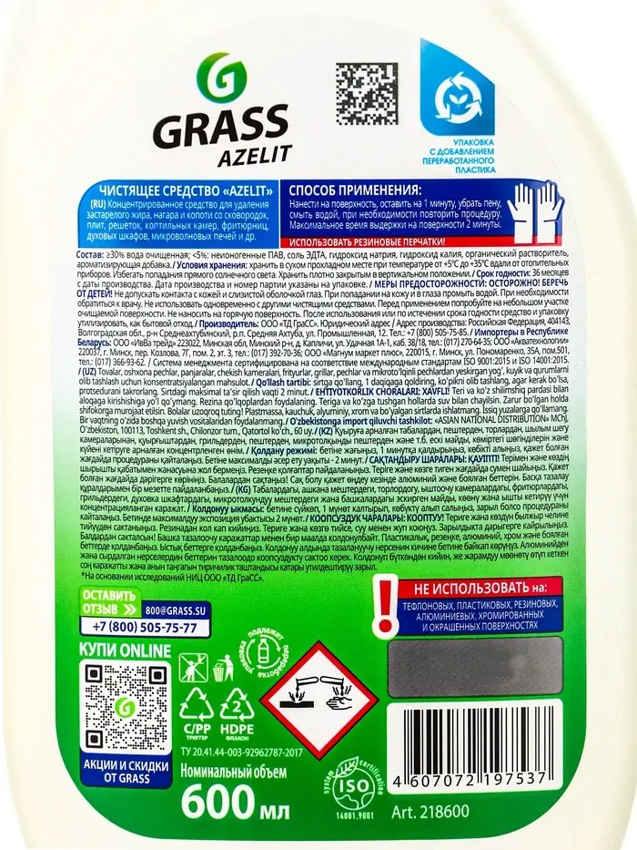 Чистящее средство Grass Azelit АНТИЖИР, спрей, для кухни, 600 мл