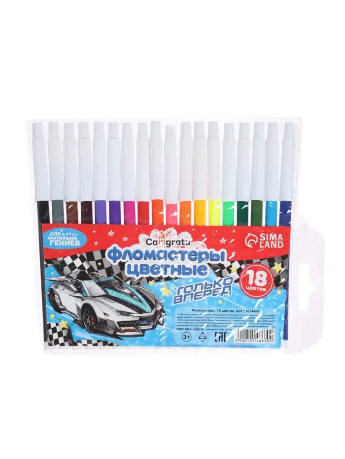 Фломастеры 18 цветов «Машинка», невентилируемый колпачок