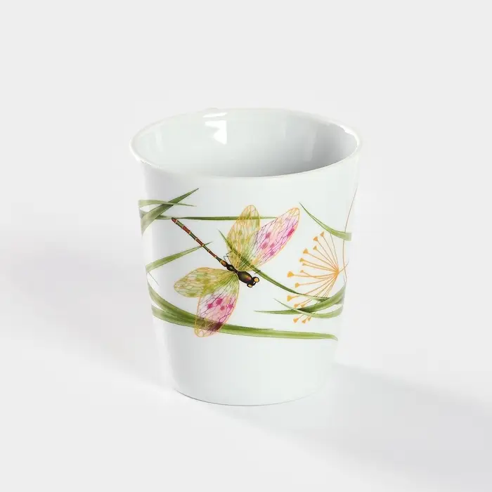 Фарфоровая кружка с рисунком стрекозы — это тот самый повседневный предмет, который делает утро приятнее. Лёгкая, аккуратная по форме и визуально свежая, она хорошо вписывается в кухню, где ценят простые, но выразительные детали. Белая основа подчёркивает декор, а сама кружка ощущается как классика «на каждый день», без перегруза и лишних акцентов.