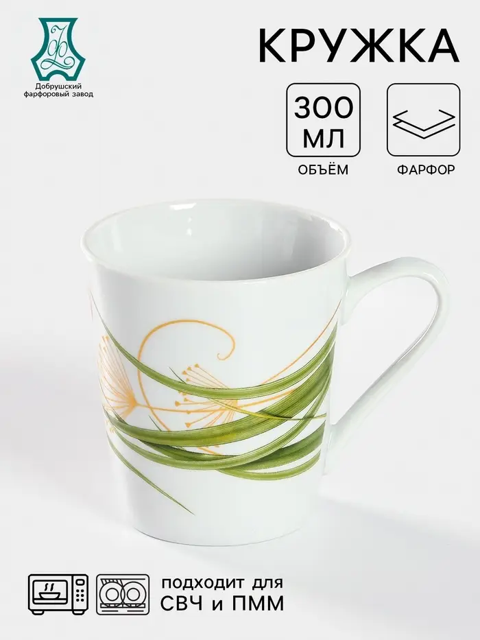 Кружка Добрушский завод «Стрекоза», 300 мл, фарфор, белая