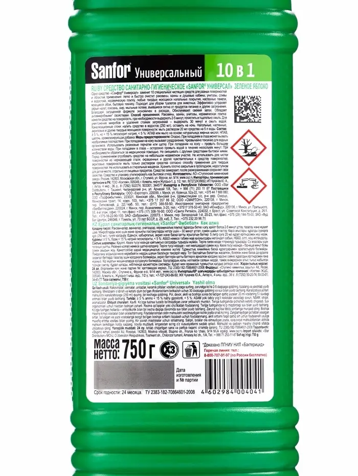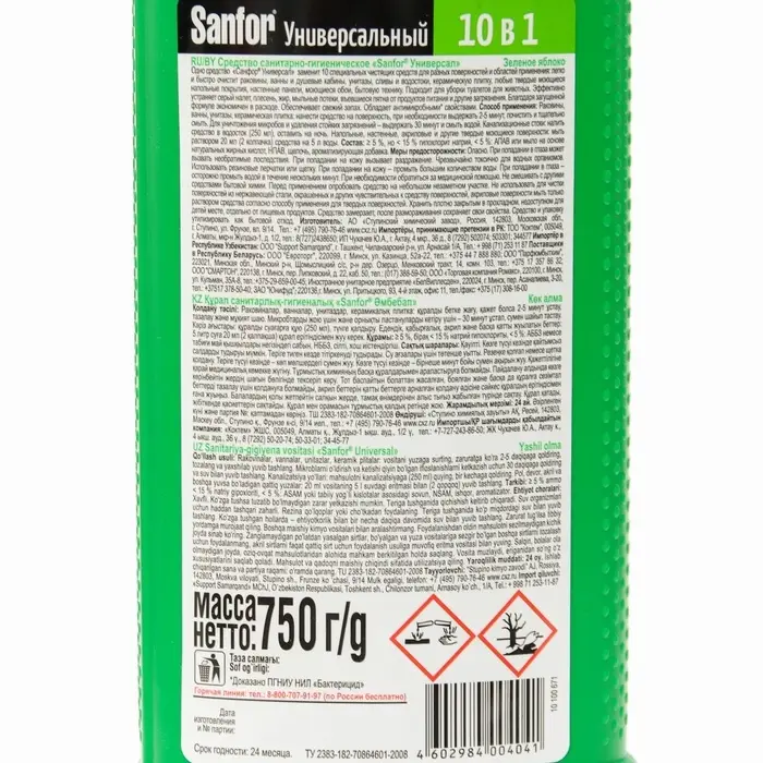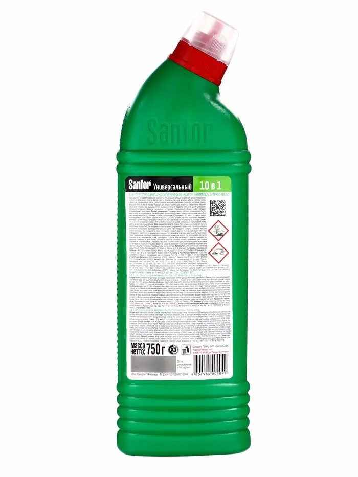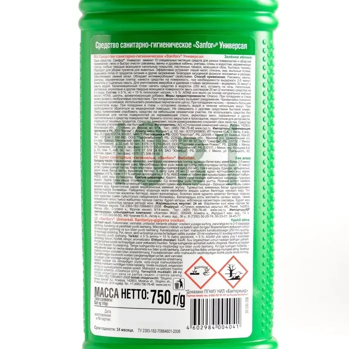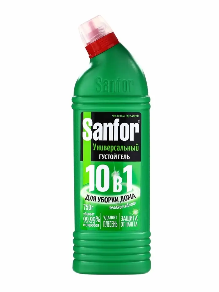 Чистящее средство Sanfor «Зеленое яблоко», антимикробный, гель, универсальное, 750 мл