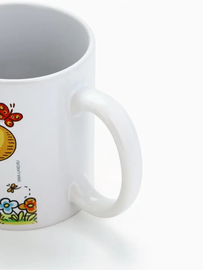 Кружка изготовлена из керамики. Рисунок нанесён методом сублимации, при котором краска проникает в верхний слой изделия, поэтому изображение получается стойким.