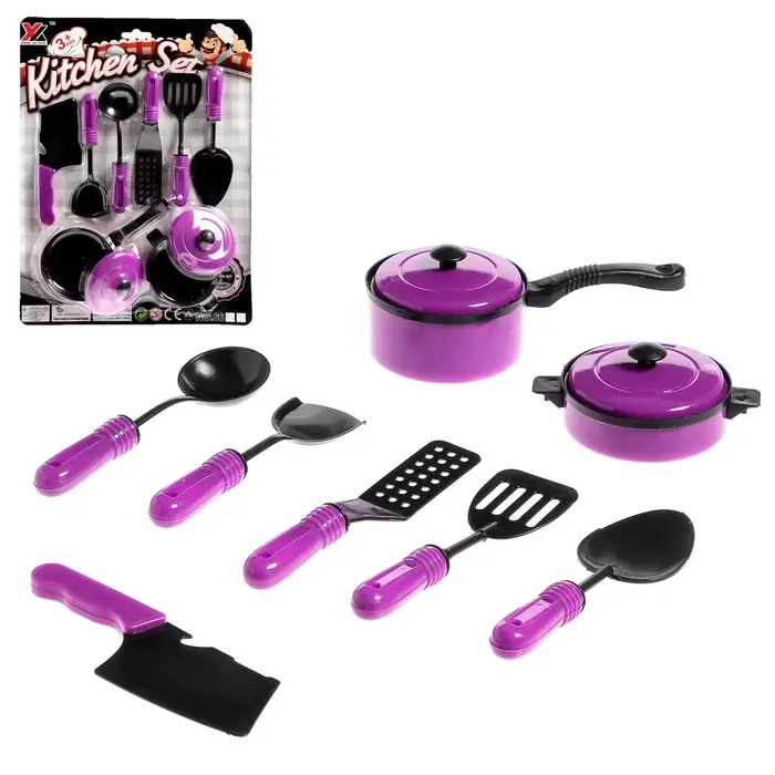Набор посуды «Мини шеф» станет замечательным подарком для девочки от 3 лет. Этот комплект, выполненный из безопасного пластика, откроет маленькому повару двери в мир увлекательных игр и поможет создать атмосферу настоящей кулинарии.
