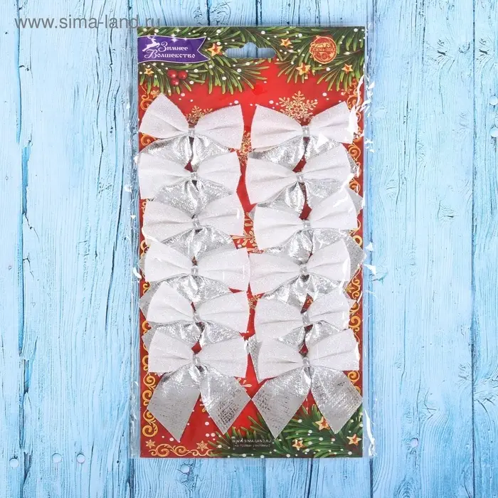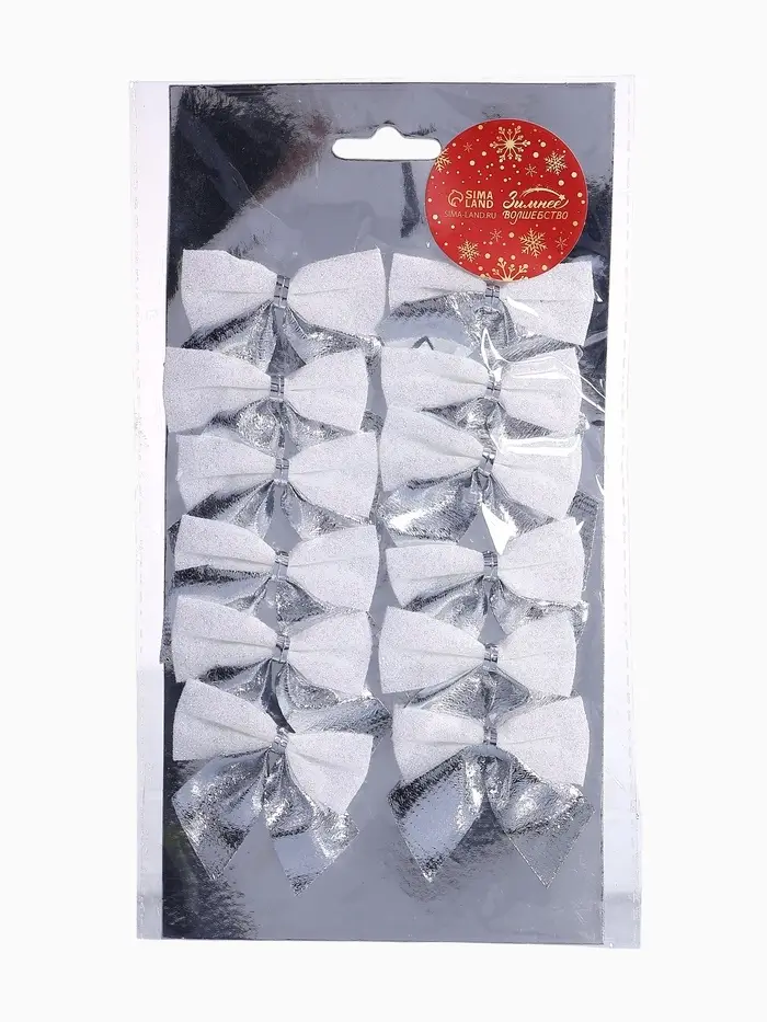 Ёлочные игрушки 12 шт. «Зимнее волшебство. Бант» пластик, 5.5×5 см, серебристо-белый